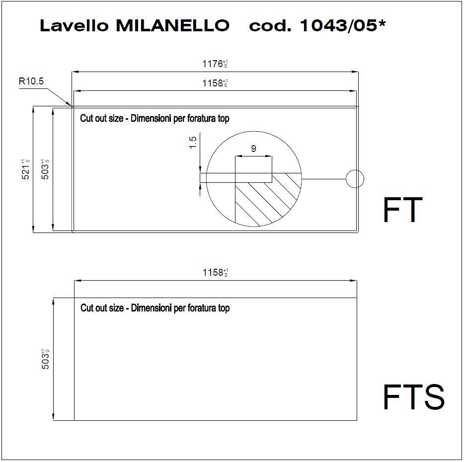 The sink can be customized with the execution on request of additional holes, usable for double-hole mixers, for remote controlled drains or for the installation of soap dispensers. The positions are marked on the drawings with dotted line holes.