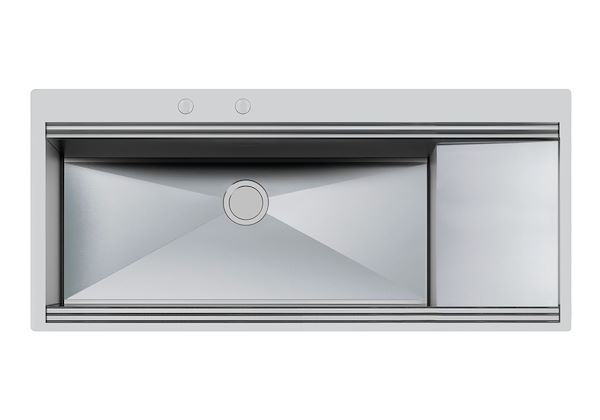 The Foster Milano sink has an ingenious design that makes it simple to use a large set of optional accessories. On the topmost supporting step, the innovative Black grids slide, creating a large and practical surface to rinse food and crockery. The second step is meant to support and allow the... sliding of a complete combination of accessories, which make some operations practical and safe: rinse, drain, slice, grate… everything can be done inside the sink. The third supporting step is on the bottom of the bowl. On this step one can rest the Black grids, making it possible to rinse foodstuffs without their coming in contact with the bottom of the sink, which may be dirty.